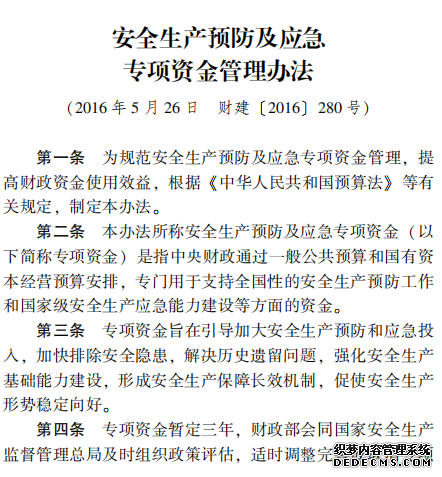 安全生產預防及應急專項 資金績效管理暫行辦法