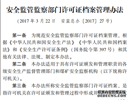 安全監管監察部門許可證檔案管理辦法