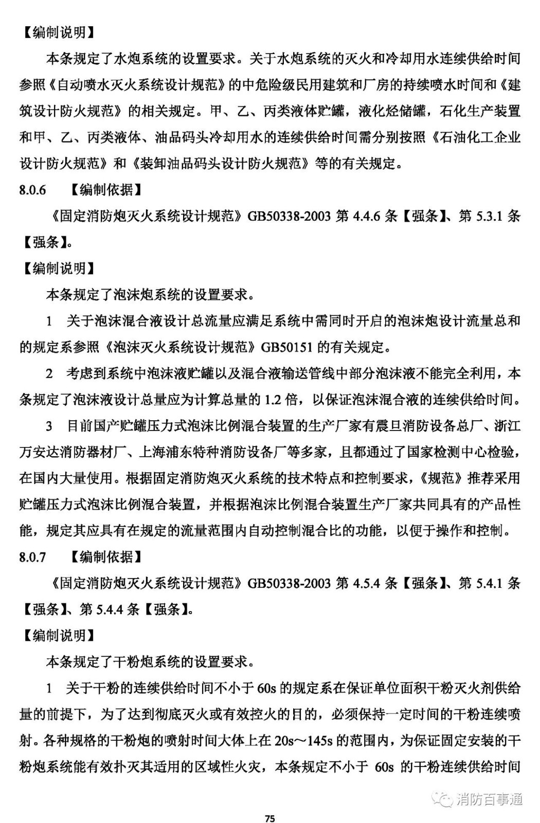 4 用于撲救非水溶性可燃液體火災的泡沫-水噴淋系統、泡沫槍系統、泡沫炮系統,其水成膜泡沫液在緩釋放時的抗燒時間不應小于10min.;