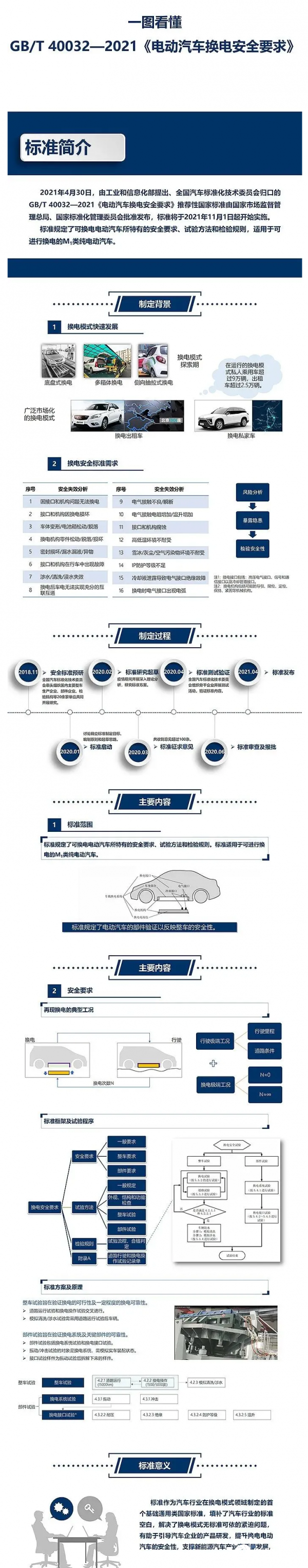 從工信部了解到,GB/T 40032-2021《電動汽車換電安全要求》推薦性國家標準的細節進一步公布,標準在2021年4月30日發布,將于2021年11月1日起開始實施,另外該國家標準要求為推薦性標準,而不是強制性標準。