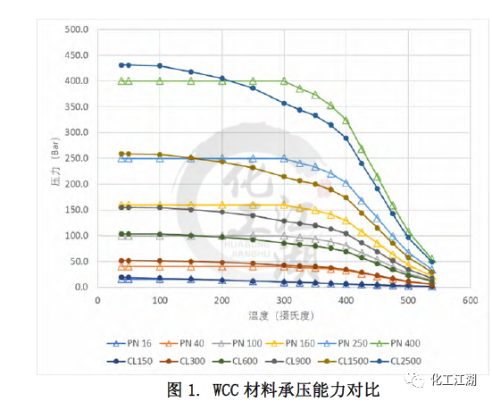 本文采用了對比冷(常溫)工作壓的方法來近似推算出與ASME標準Class壓力等級最鄰近的EN標準PN壓力等級。EN12516-1標準中列出的所有材料的冷工作壓都是相同的。而ASME B16.34標準中列出的冷工作壓和材料相關(guān),故選取了其中一種較強材料(C12A)的冷工作壓用于對比。 通過對比得到每個ASME標準 Class壓力等級對應(yīng)的最鄰近的EN標準 PN壓力等級,見表1。同時,這樣的對應(yīng)關(guān)系也和閥門設(shè)計的通用做法一致。本文的管道內(nèi)徑,最小壁厚,材料承壓能力的對比都是依照表1中的對應(yīng)關(guān)系來進行的。 1.2 材質(zhì)承壓能力的對比 無論是ASME標準還是EN標準都列出了一些ASTM標準材料的壓力溫度等級,即材料在不同溫度下的承壓能力。本文選取了常見的閥體材料:碳鋼WCC,合金鋼 WC9和C12A進行研究,來對比兩個標準中相同材料在標準壓力等級下的承壓能力的差別。 圖1和圖 2顯示了WCC材料的溫度壓力曲線和Class與PN的對比,可以看出: (1)對于ASME的 Class 150和EN12516-1 的PN16,當溫度低于150攝氏度時,EN標準規(guī)定的材料承壓能力低于ASME標準規(guī)定的材料承壓能力,且隨著溫度升高,差距逐漸縮小。當溫度高于150攝氏度時,兩個標準對相同材料的承壓能力的規(guī)定近乎相同。 (2)對于ASME的 Class 300和EN12516-1 的PN40,在整個溫度的范圍內(nèi),EN標準規(guī)定的材料承壓能力均低于ASME標準規(guī)定的材料承壓能力。當溫度低于300攝氏度時,隨著溫度升高,差距逐漸縮小。當溫度高于300攝氏度時,兩個標準對相同材料的承壓能力的規(guī)定差別趨于一致,約為-7%。 (3)對于ASME的 Class 900和EN12516-1 的PN160, 在整個溫度的范圍內(nèi),EN標準規(guī)定的材料承壓能力均高于ASME標準規(guī)定的材料承壓能力。當溫度低于300攝氏度時,隨著溫度升高,差距越來越大。當溫度高于300攝氏度時,兩個標準對相同材料的承壓能力的規(guī)定差別趨于一致,約為24%。 (4)還有一點值得注意的,除了PN16,其他PN壓力等級對應(yīng)的工作壓力在低于300攝氏度以下都是一樣的,而ASME等級對應(yīng)的工作壓力是隨著溫度升高持續(xù)下降的。 1.3 對閥體設(shè)計的指導(dǎo) 在實際設(shè)計過程中,無論是為了縮短新產(chǎn)品推向市場的時間,還是從產(chǎn)品標準化、成本優(yōu)化的角度去考慮,盡可能多地將已有的設(shè)計或者零部件(尤其是需要開發(fā)鑄造模具的閥體)應(yīng)用到新的產(chǎn)品中,都是設(shè)計師不可避免要考慮的問題,可以采用同一個閥體鑄件的設(shè)計來滿足ASME 標準和EN標準的要求呢?為了解答這個問題,本文選取了三個不同壓力等級-低、中、高的十二個具體實例,各項參數(shù)的對比結(jié)果如表3 所示。 (1)低壓ASME Class 300與 EN PN40 從表3中差別的百分數(shù)可以看出,在兩個尺寸下,滿足ASME標準和EN 標準的管道內(nèi)徑和最小壁厚的差別,均小于5%。就是說,用同一個閥體設(shè)計來滿足兩個標準的設(shè)計要求是可以接受的。同時從圖2中可以看出,閥體常見材料在這兩個等級的承壓能力差別也較小,10%以內(nèi)。因此,兩個設(shè)計可以在類似的實際工況中應(yīng)用。 (2)中壓ASME Class 900與 EN PN160 對于中壓下尺寸為DN100和DN200的兩組設(shè)計,從差別的百分數(shù)可以看出,雖然每組中要對比的兩個設(shè)計的管道內(nèi)徑非常接近,但是所要求的最小壁厚卻相差較多,超過了20%。在這種情況下,實踐中也是可以用同一個閥體設(shè)計來滿足兩個標準的設(shè)計要求的,但是需要評估由此帶來的對最小壁厚要求較小的閥體的成本的影響。另一方面,從圖2中可以看出,閥體常見材料在這兩個等級的承壓能力差別較大,在有些溫度下差別達到20%。這種材料承壓能力上的差別和最小壁厚的差別是一致的。 (3)高壓ASME Class 2500與EN PN400 對于高壓下尺寸為DN100和DN200,閥門的管道內(nèi)徑和最小壁厚存在著巨大差別,30%-50%,故采用同一個閥體設(shè)計來滿足兩個標準的設(shè)計要求是不合理的。 還有另外一個因素需要在閥體設(shè)計時考慮,那就是閥體兩個端口之間的長度。ASME B16.34中指出可以按照ASME B16.10來確定端口對端口尺寸。EN12516-1 并未提及端口對端口尺寸,但歐標體系中EN558規(guī)定了端口對端口的尺寸。考慮到端口對端口尺寸并非標準強制要求,故本文未提供ASME B16.10和EN558的區(qū)別。 (1)管道內(nèi)徑 ASME標準和EN標準在管道內(nèi)徑的主要差別在于管道內(nèi)徑是否隨著壓力等級的變化而變化。閥體設(shè)計時,管道內(nèi)徑的差異會進一步放大閥門最小壁厚的差異。 (2)最小壁厚 兩個標準在閥門最小壁厚上的差異與壓力等級有關(guān),差別大致在6%到 26%之間。 (3)材料承壓能力 本文所研究的五種材料在兩個標準相鄰壓力等級間的對比趨勢類似。當溫度高于一定值時,兩個標準對相同材料的承壓能力的規(guī)定的差別趨于一致,但不同的壓力等級的差別大小不一。 (4)通過十二個實例驗算,發(fā)現(xiàn)對于DN100和DN200, 同類設(shè)計壓力下,ASME標準和EN標準對管道內(nèi)徑和最小壁厚要求的差別非常接近。并解釋了在實際設(shè)計工作中,需要根據(jù)具體的閥門尺寸,壓力等級一一比較管道內(nèi)徑和最小壁厚等設(shè)計參數(shù),并考慮到時間和成本的平衡,才能做出合理的決定。