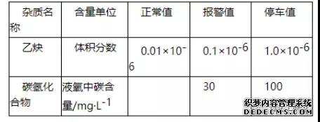 1)規定原料空氣中乙炔和碳氫化合物的體積分數分別不得超過0.5×10-6和30×10-5;