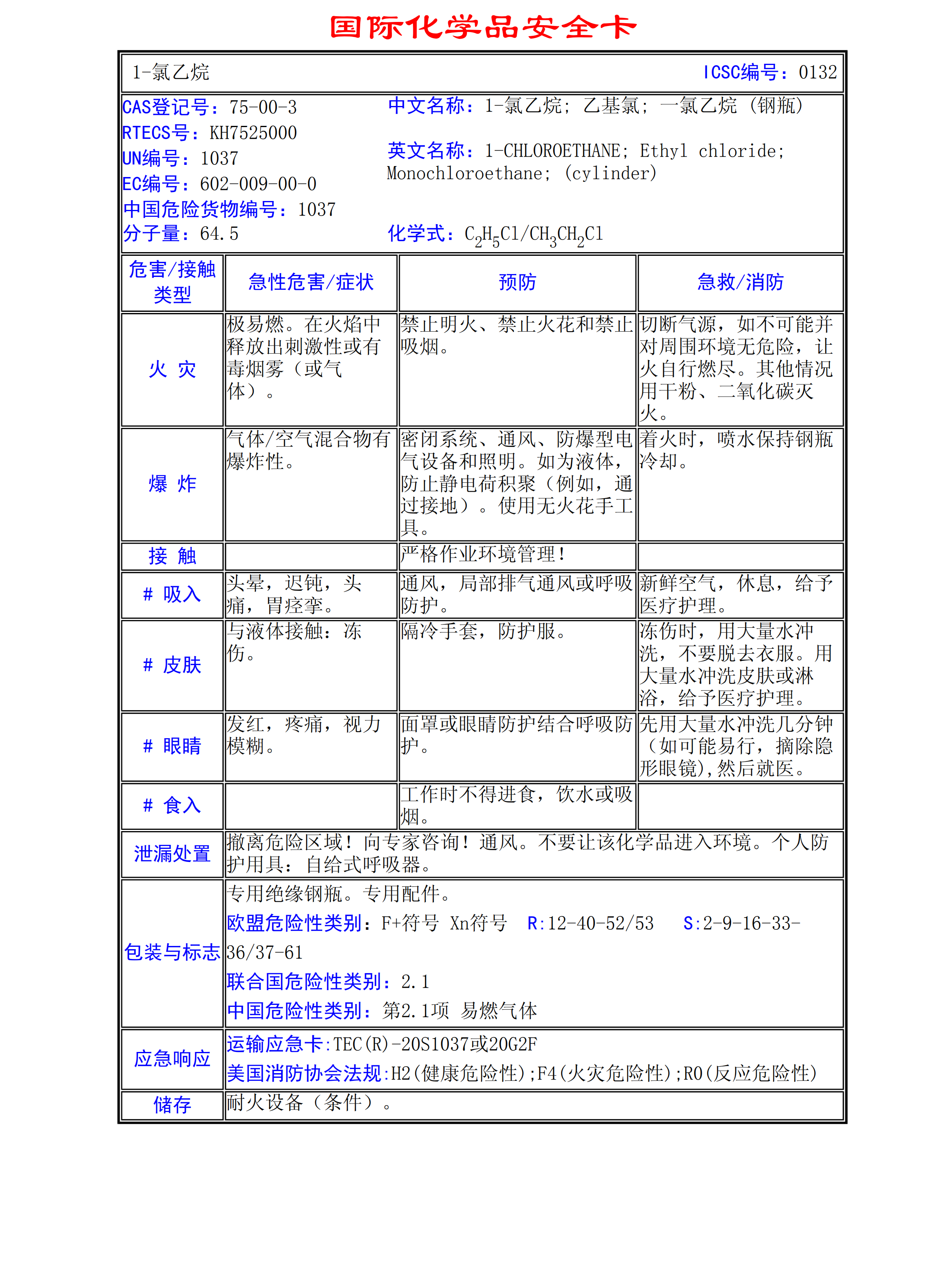 1-氯乙烷MSDS