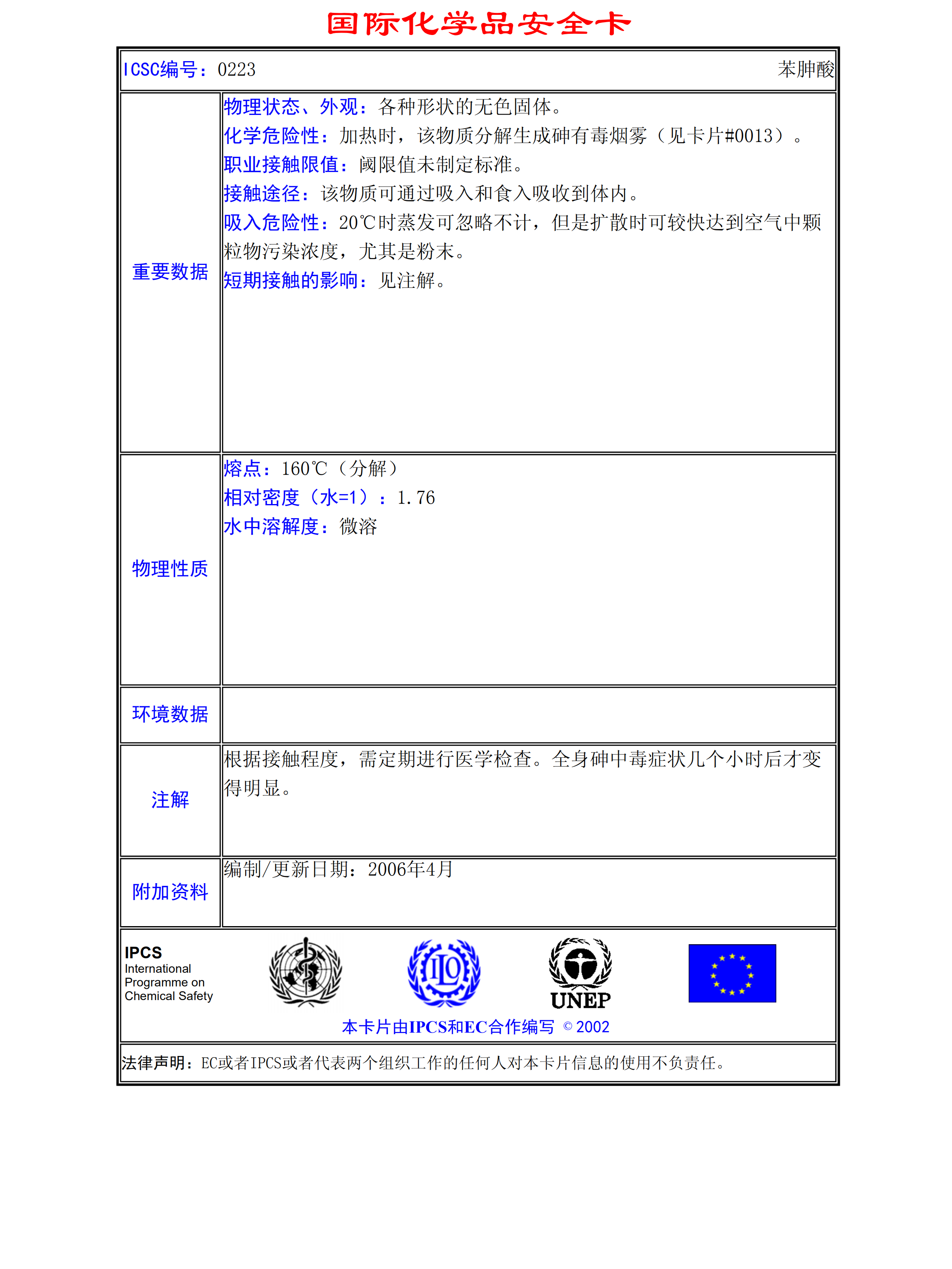 苯胂酸MSDS