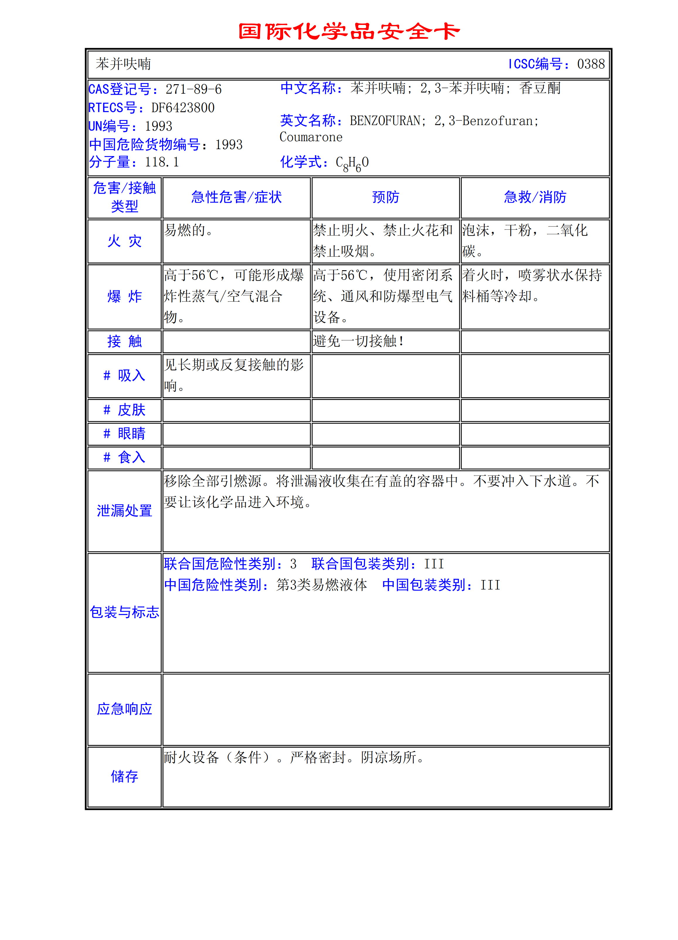 苯并呋喃MSDS