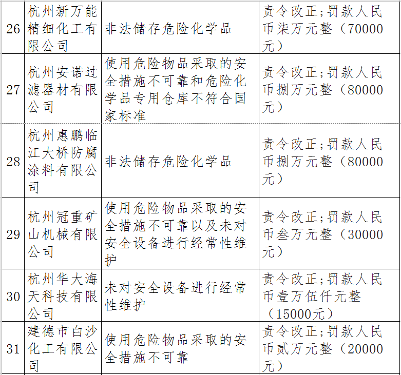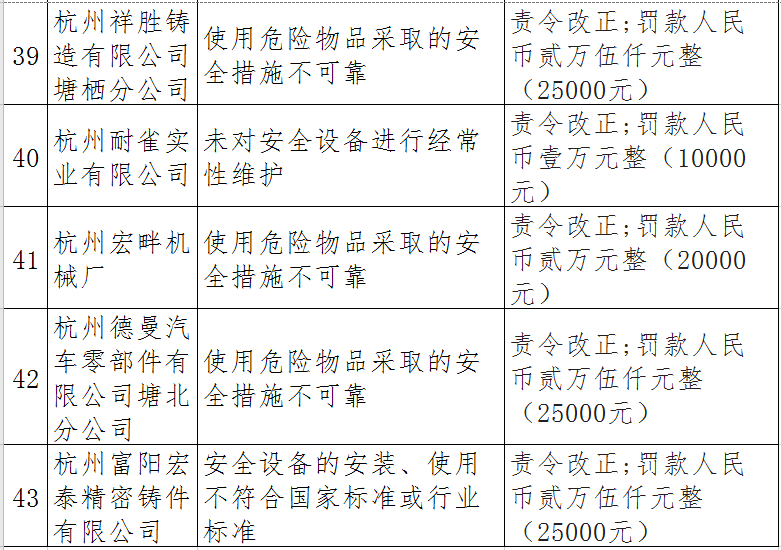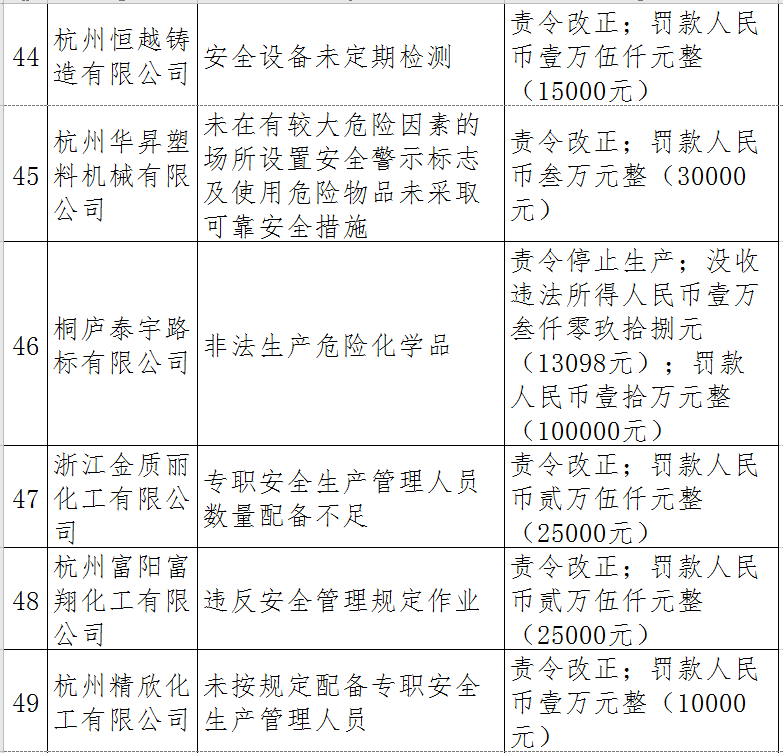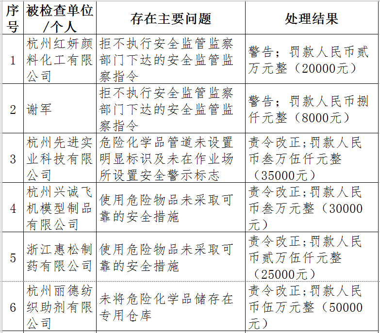 近日,杭州市應(yīng)急管理局對50多家被行政處罰的企業(yè)(個(gè)人)進(jìn)行曝光