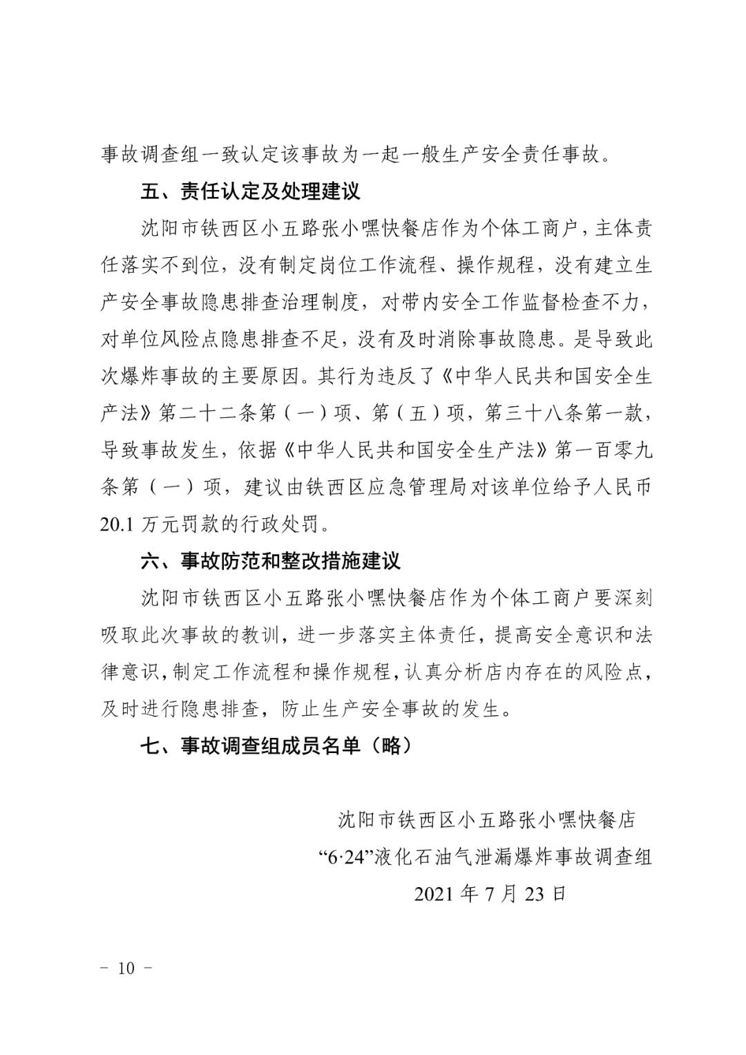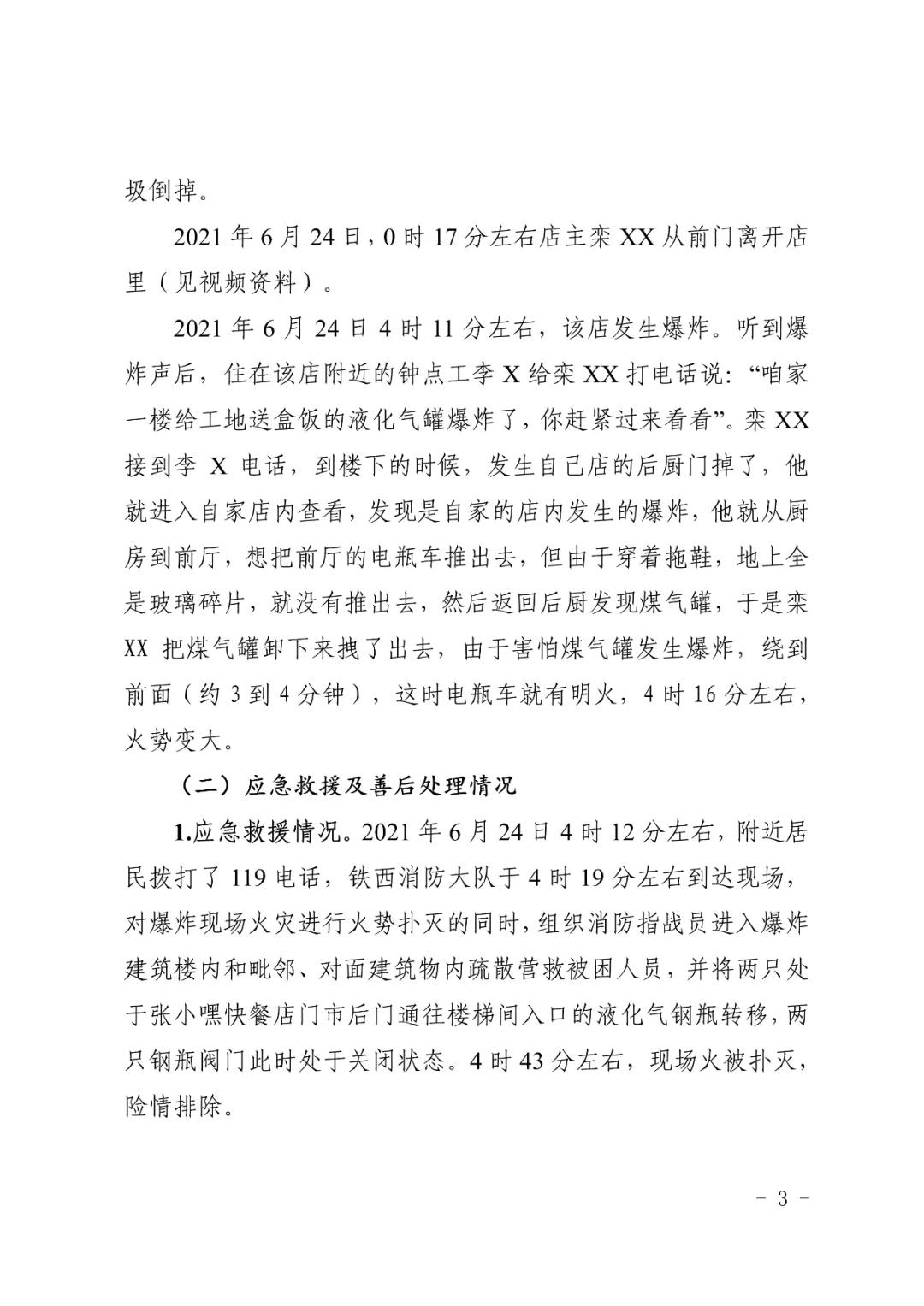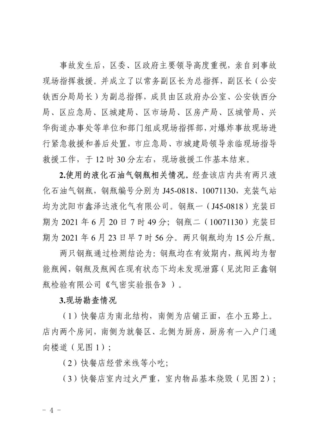 2021 年 6 月 24 日 4 時(shí) 11 分左右,位于沈陽市鐵西區(qū)小五路 54 號 3 門,沈陽市鐵西區(qū)小五路張小嘿快餐店內(nèi)發(fā)生液化石油氣泄漏爆炸,無人員傷亡,直接經(jīng)濟(jì)損失 70 余萬元。
