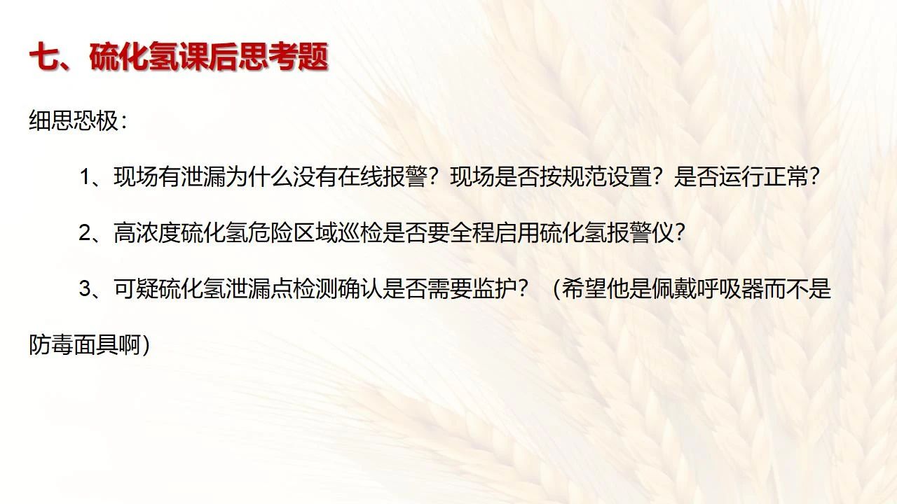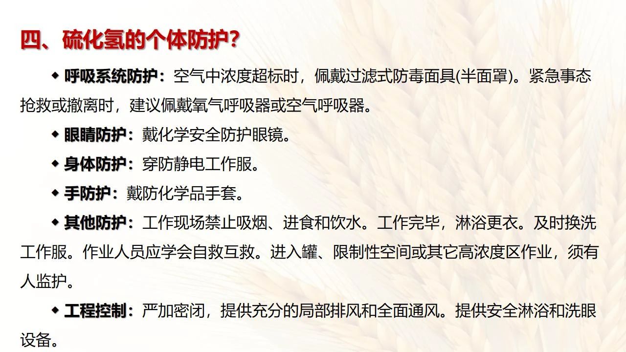 (6)發現硫化氫濃度高,要先報告,采取一定防護措施后,才能進入現場檢查和處理。