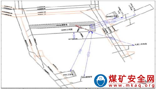 圖 2 2305S 工作面到各采掘地點距離示意圖