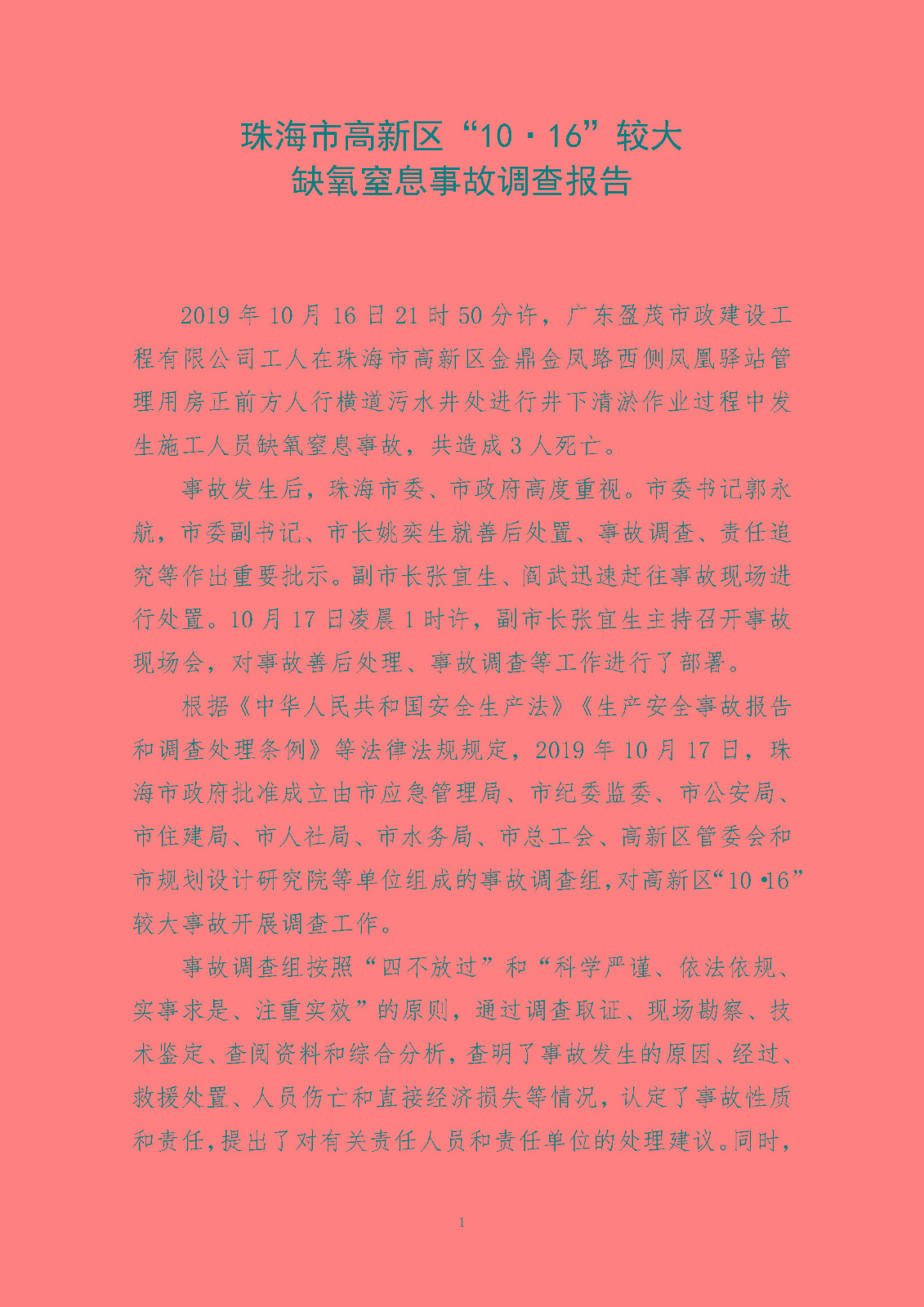 珠海市高新區(qū)“10·16”較大缺氧窒息事故調(diào)查報(bào)告