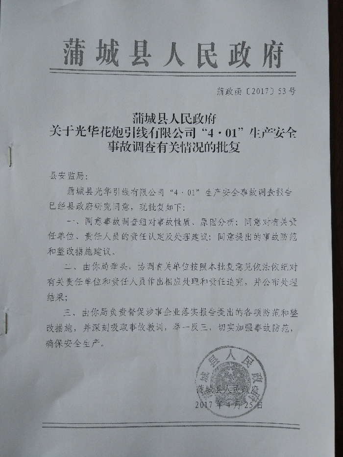蒲城縣光華花炮引線有限公司“4·01”