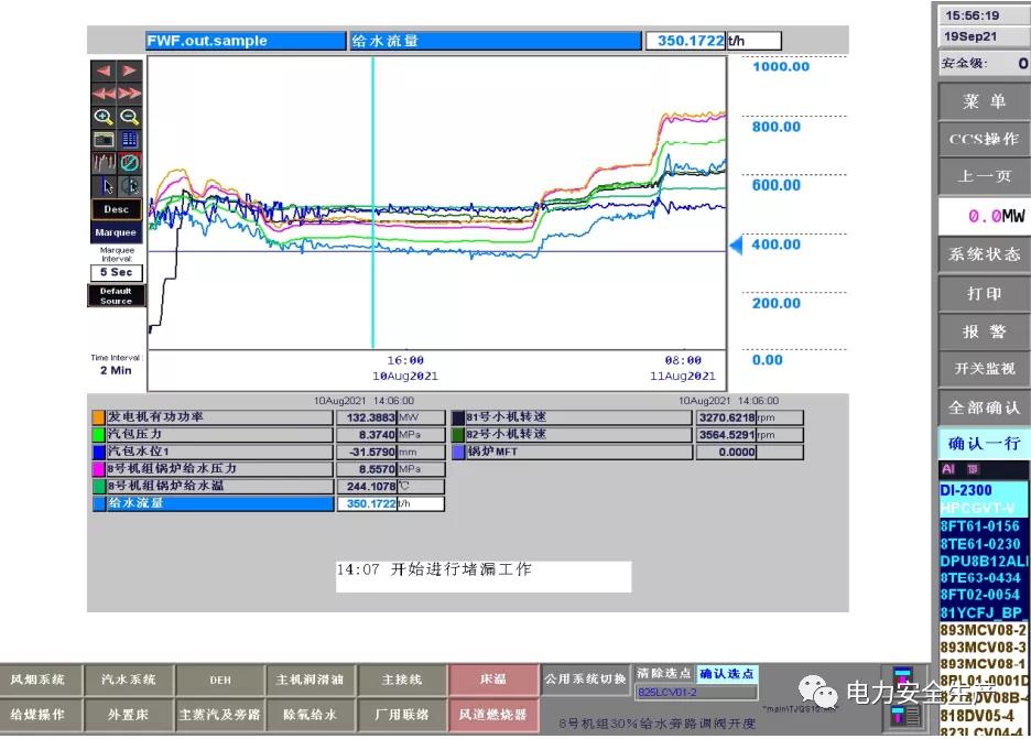 5.調閱 9 月 14 日機組運行參數,帶壓堵漏工作開始前沒有采取降負荷、降給水壓力及溫度等安全預控措施,也沒有維持運行參數穩定的具體措施。