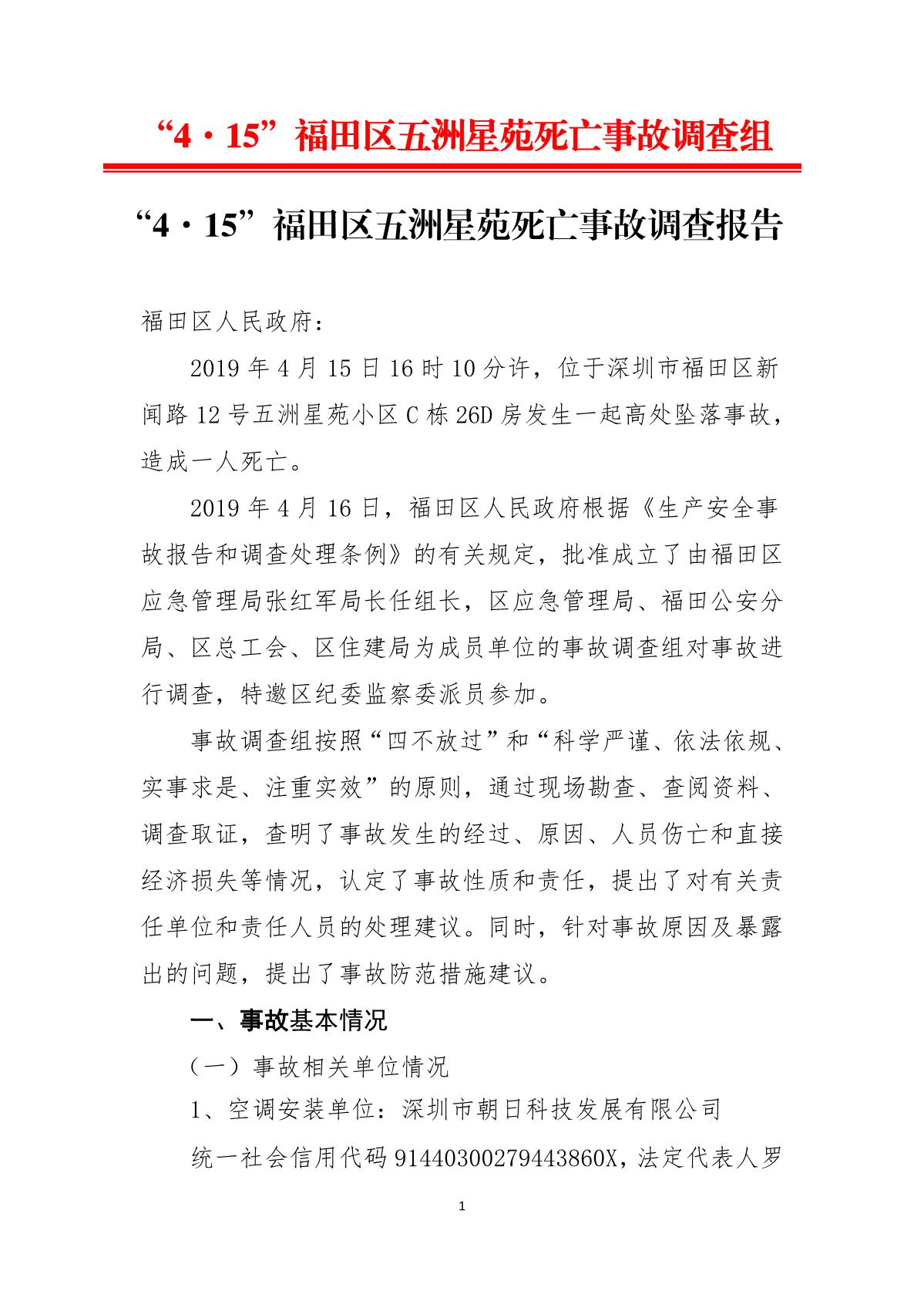 “4.15”福田區(qū)五洲星苑死亡事故調(diào)查報告