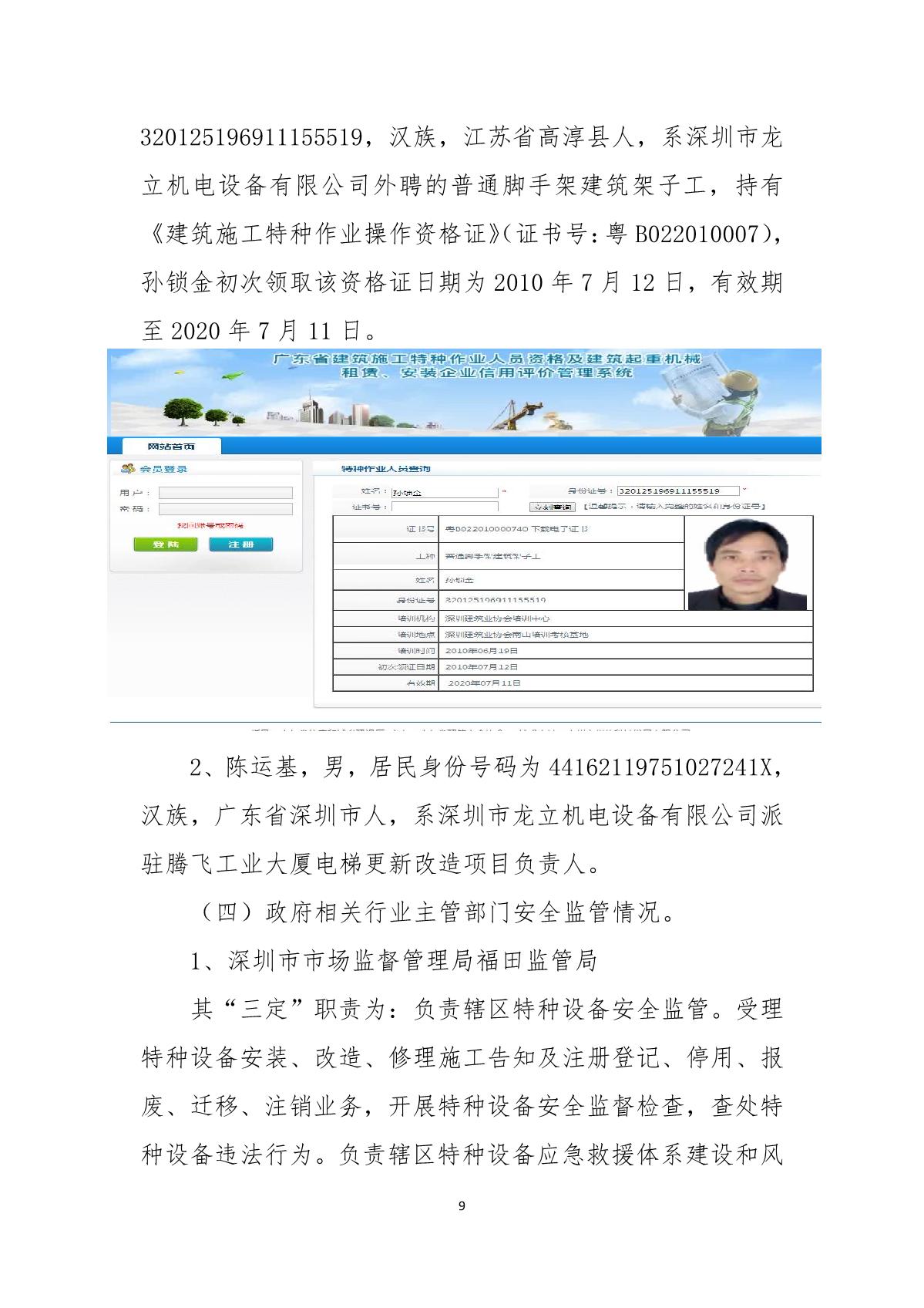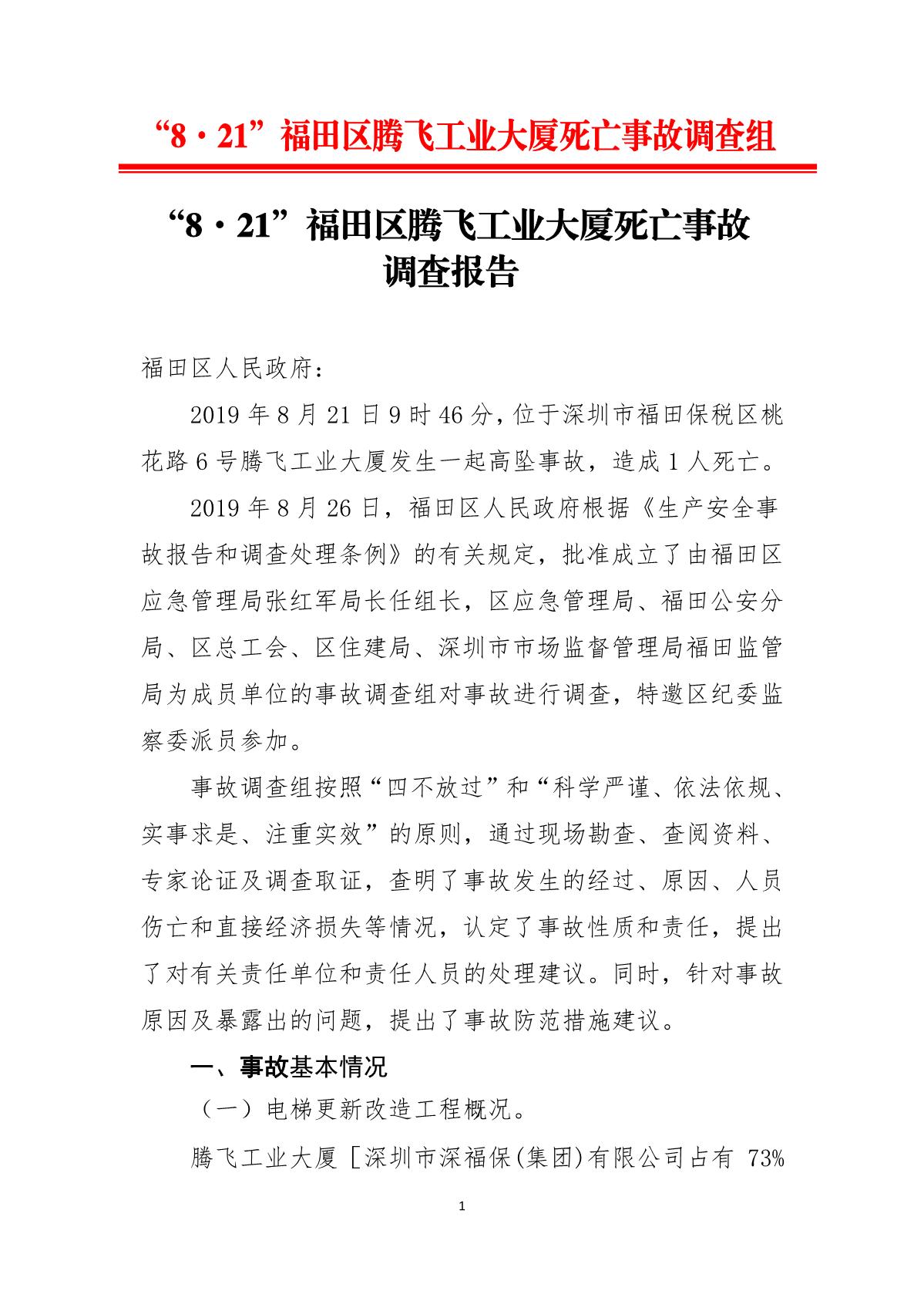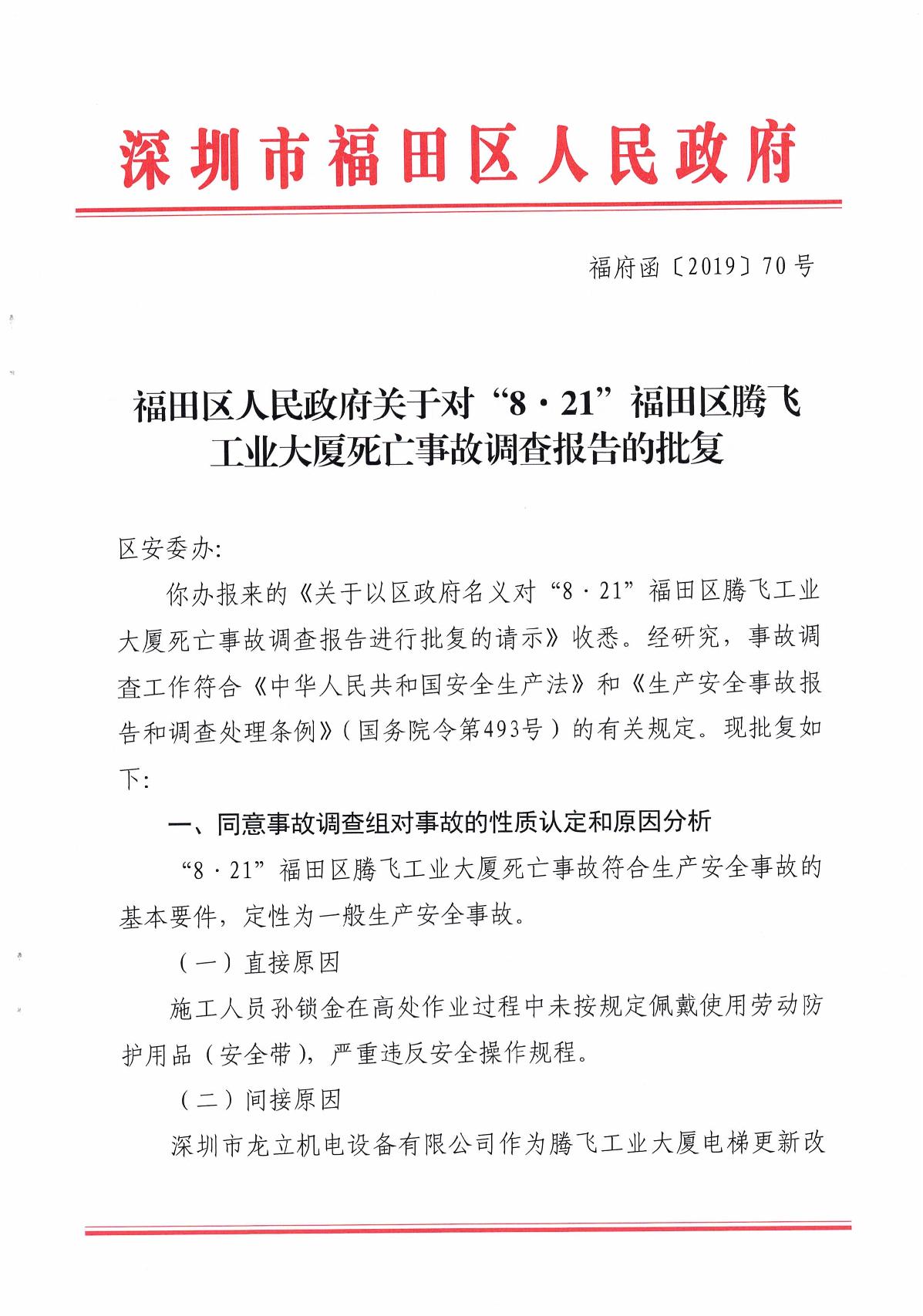 “8.21”福田區騰飛工業大廈死亡事故調查報告