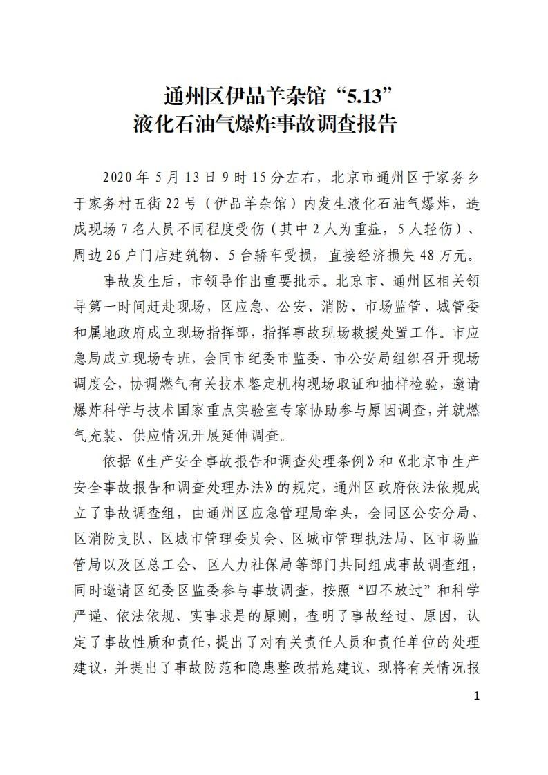 造成7人受傷,26戶建筑物、5輛汽車受損的北京市通州區伊品羊雜館“5.13”液化石油氣爆炸事故調查報告,來了!