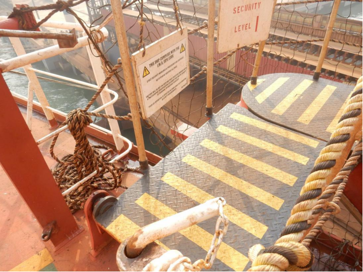 近期發(fā)生了一起海上事故導致一名船員受傷,事故原因是由于舷梯轉盤銷存在缺陷導致的。目前,各類公約法規(guī)中均沒有要求或建議去檢查、維護或更換舷梯轉盤銷。如果不能適當、定期的對該轉盤銷進行檢查和更換,腐蝕、老化以及金屬疲勞等現(xiàn)象就會導致轉盤銷結構失效,最終導致事故的發(fā)生。