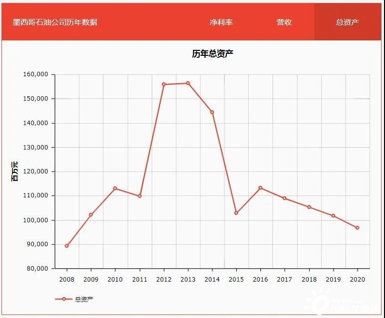 事實上,墨西哥曾屢屢嘗試改革,卻舉步維艱。2014年該國通過法案,希望吸引外資和私人資本參與到油氣勘探生產(chǎn)過程。受此影響,墨國油總資產(chǎn)在兩年內出現(xiàn)小幅上升,但隨后又開啟了跌跌不休的模式。
