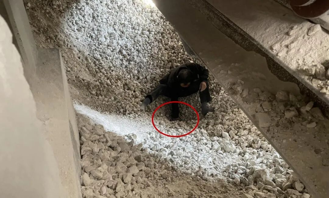 事發(fā)時,被困工人發(fā)現(xiàn)石灰斗罐下料口被堵塞,便進入斗罐底部開展疏通工作,罐壁四周的石灰塊突然崩塌,造成該工人當(dāng)場被石灰料埋壓,埋壓深度約1.7米。