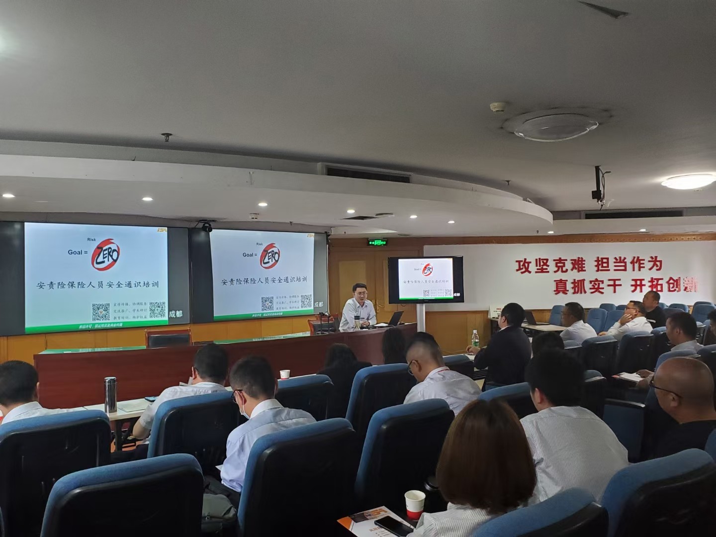 參會人員:成都市分公司總經理助理劉亞;責任信用保險部經理吳超;安責險項目團隊:成華、邛崍、崇州、天府新區、新都、簡陽、青白江、天府支公司商非分管經理、安責險團隊經理,安責險骨干,安責險相關人員。